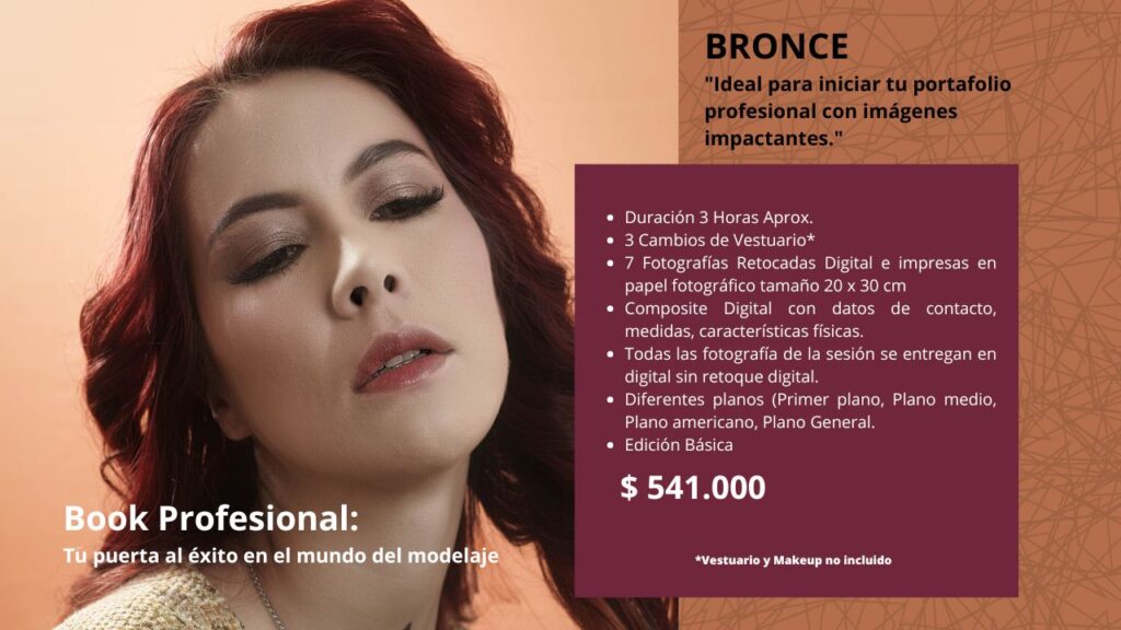 Las sesiones se realizan con o sin maquillaje profesional y el Book Final se entrega conforme a lo que requieras: En Digital, Fotos Impresas tamaño 20×30 cm o impreso en fabuloso Book de Lujo.