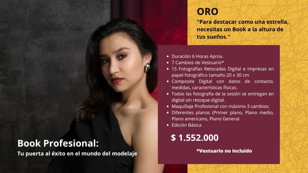 Se realizan todo tipo de Book y Composites, para Modelos, Actores, Cantantes, y para aquellas mujeres que siempre han deseado vivir experiencia de tener una sesión de fotografía a un nivel profesional.